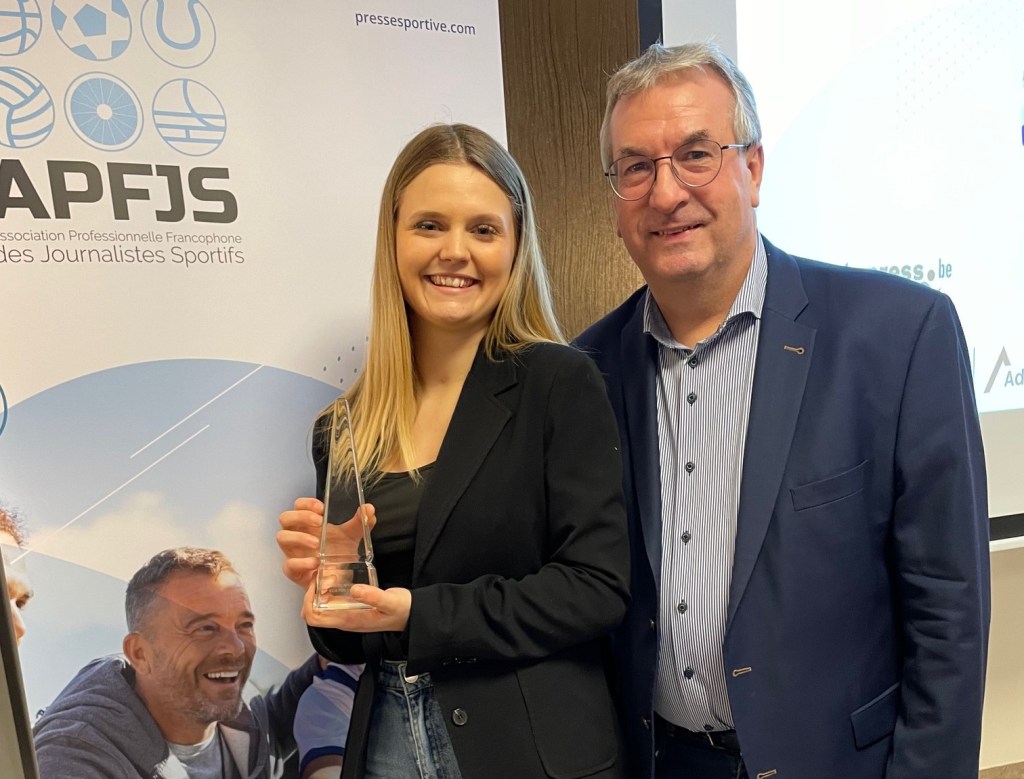 La basketteuse Elia Fontaine a reçu le lundi 26 février 2024 à Loyers (Namur) le « Plus du Sport », attribué annuellement par l’Association Professionnelle Francophone des Journalistes Sportifs (APFJS).